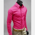Business Shirt Men New No-iron Slim Fashion Long-sleeved Tees Lapel Formal Male Brand Clothing White Gray Blue Pink Shirt